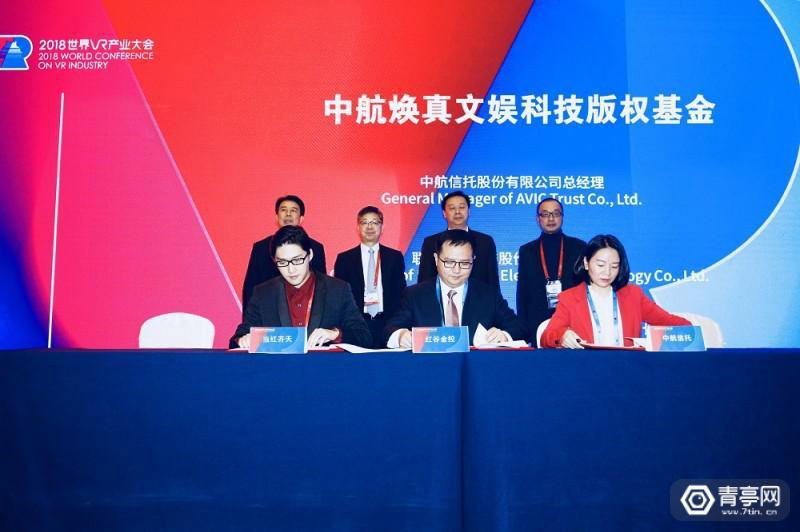 在2018世界VR产业大会投资路演分论坛上,当红齐天集团与江西红谷滩金融控股有限公司、中航信托有限公司签署协议,成立中航焕真泛文娱科技版权基金。